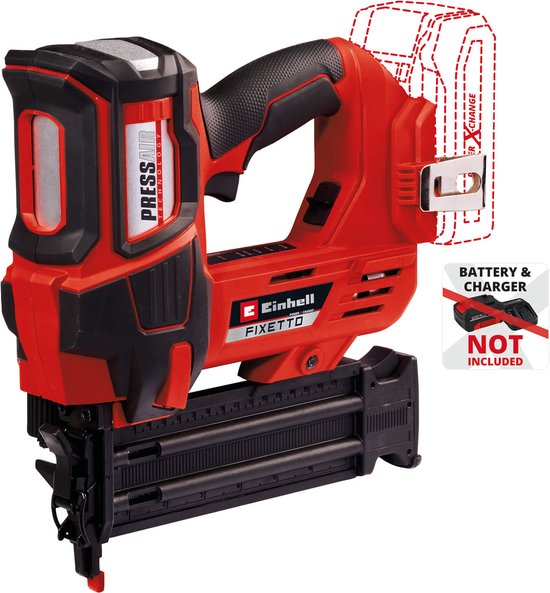 Het accu spijkerpistool FIXETTO 18/50 N van Einhell is niet alleen handig bij het klussen in huis, maar ook ideaal voor professioneel gebruik. Dankzij de krachtige aandrijving en de PressAir-technologie kan dit spijkerpistool tot wel 60 slagen per minuut maken, waardoor je snel en efficiënt te werk kunt gaan. De diepte-instelling zorgt ervoor dat je de inslagdiepte van de spijkers naar wens kunt aanpassen, voor een perfect resultaat bij elke klus. Dit spijkerpistool is onderdeel van de Power X-Change-productlijn van Einhell, wat betekent dat je de accu's en opladers van deze lijn kunt combineren. Het grote magazijn van de FIXETTO 18/50 N heeft een capaciteit van maximaal 100 spijkers en is voorzien van een handige vulstandniveau-indicator. Met één druk op de knop kun je het magazijn openen om het bij te vullen, en vastzittende spijkers zijn eenvoudig te verwijderen zonder extra gereedschap. Kortom, met het Einhell accu spijkerpistool FIXETTO 18/50 N haal je een betrouwbaar en veelzijdig gereedschap in huis voor al je klussen.