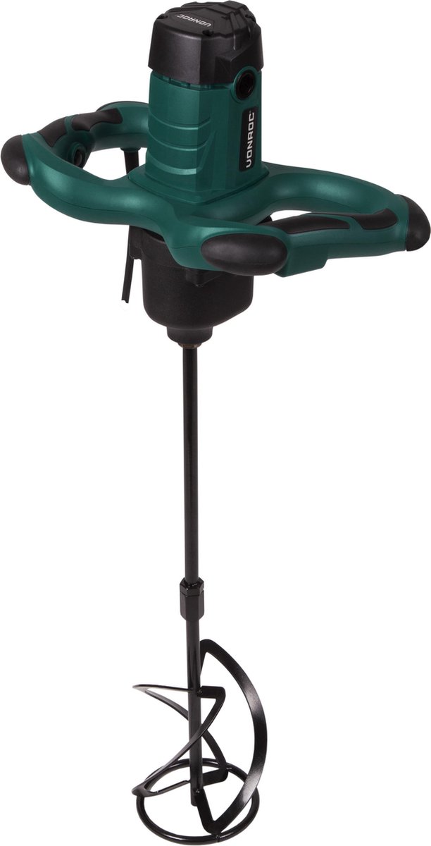 De menger heeft een krachtige motor van 1400W en een soft start-functie, waardoor je zonder schokken en spetters aan de slag kunt. De rubberen kabel zorgt voor extra veiligheid tijdens het gebruik. De ergonomische handgreep zorgt voor comfort tijdens het mixen en dankzij het lage gewicht van slechts 3,3 kg is de menger makkelijk hanteerbaar. De VONROC verf- & cementmenger is voorzien van een 120mm mengstaaf met een lengte van 600mm, waardoor je snel en efficiënt grote hoeveelheden kunt mixen. Daarnaast is de menger uitgerust met een handige snelheidsregeling, zodat je de mixsnelheid kunt aanpassen aan het type materiaal dat je wilt mengen. Met deze veelzijdige menger kun je elke klus aan en ben je verzekerd van een perfect eindresultaat.