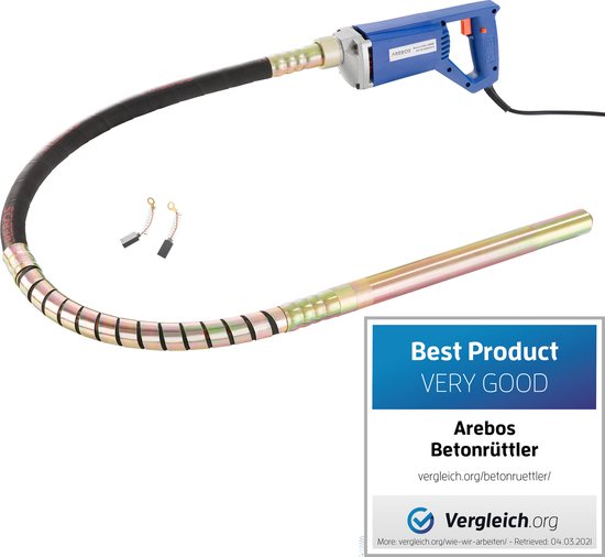 De trilnaald is draagbaar en gemakkelijk te hanteren dankzij de ergonomische handgreep. De lengte van de slang is 1,5 meter, waardoor u gemakkelijk bij moeilijk bereikbare plekken kunt komen. De trilnaald is ideaal voor het verdichten van beton bij bouwprojecten, zoals het storten van vloeren of funderingen. Met een maximale kracht van 800 W bent u verzekerd van efficiënt en krachtig trillen, waardoor luchtbellen en holtes in het beton worden geëlimineerd. Hierdoor krijgt u een sterker en duurzamer eindresultaat. De AREBOS betontrilnaald is een onmisbaar hulpmiddel voor elke professional in de bouwsector en zorgt voor een perfect gladde afwerking van uw betonprojecten.