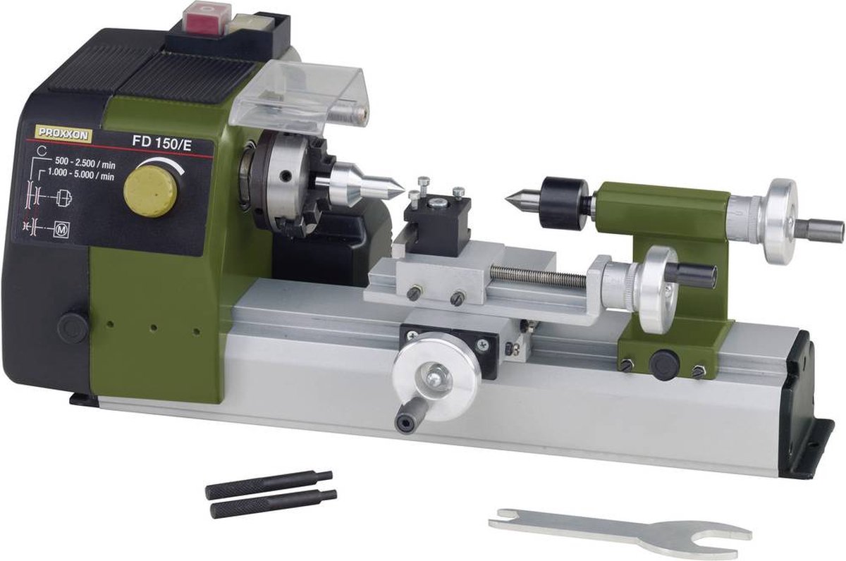 De Proxxon Micromot FD 150/E precisiedraaibank 24 150 is een veelzijdige tool die perfect is voor het draaien, afsteken en boren van verschillende materialen. Met de meegeleverde drieklauwplaat en meelopend center kun je direct aan de slag met precisiewerk. Het machinebed is voorzien van een zwaluwstaartgeleiding van aluminium persgietwerk, wat zorgt voor een stabiele en nauwkeurige werking. Deze precisiedraaibank is ideaal voor ambachtslieden en hobbyisten die hoge eisen stellen aan hun werk. De Proxxon Micromot FD 150/E is compact en gemakkelijk te gebruiken, waardoor je moeiteloos complexe projecten kunt realiseren. Met deze draaibank kun je niet alleen vlak-, langs-, uit- en conisch draaien, maar ook nauwkeurig boren. Kortom, een onmisbaar gereedschap voor elke werkplaats.