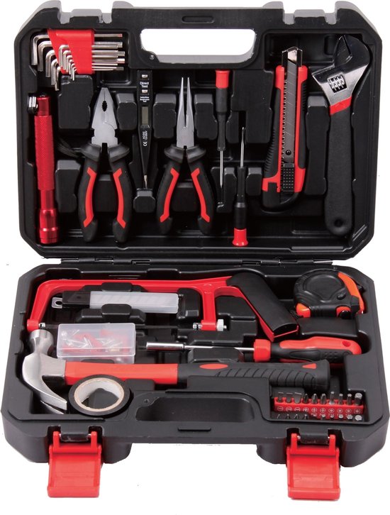 De gereedschapskoffer bevat een divers assortiment aan gereedschap, waaronder verschillende soorten schroevendraaiers, tangen, inbussleutels, doppen, een hamer, een waterpas en nog veel meer. Met deze set heb je alles bij de hand wat je nodig hebt voor allerlei klussen, van het monteren van meubels tot het repareren van fietsen of auto's. De koffer is overzichtelijk ingedeeld, zodat je snel het juiste gereedschap kunt vinden en efficiënt te werk kunt gaan. Naast het brede scala aan gereedschap, wordt de gereedschapskoffer ook geleverd met een handige opbergkoffer met stevige sluitingen. De koffer is voorzien van handige vakken en houders om elk stuk gereedschap op zijn plaats te houden en beschadiging te voorkomen. Hierdoor blijft je gereedschap georganiseerd en is het gemakkelijk mee te nemen naar elke kluslocatie. Met de ALDORR Tools 73-Delige gereedschapsset ben je altijd goed voorbereid en klaar om elke klus aan te pakken!