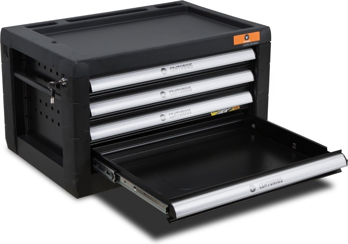 De Centurius gereedschapskist is gemaakt van stevig metaal en heeft een robuust ontwerp dat bestand is tegen dagelijks gebruik in de werkplaats. Met een capaciteit van 4 lades biedt deze gereedschapskist voldoende ruimte voor al uw gereedschap, van schroevendraaiers tot moersleutels en andere benodigdheden. Dankzij de kogelgelagerde lades kunt u moeiteloos al uw gereedschap bereiken, terwijl het cilinderslot ervoor zorgt dat uw gereedschap veilig en beschermd blijft wanneer u het niet gebruikt. De matzwarte afwerking geeft deze gereedschapskist een moderne uitstraling die perfect past in elke werkplaats of garage. De stevige handgreep aan de bovenkant maakt het gemakkelijk om de gereedschapskist te verplaatsen naar waar u hem nodig heeft. Met de Centurius gereedschapskist houdt u uw gereedschap georganiseerd en binnen handbereik, zodat u efficiënt kunt werken en uw projecten moeiteloos kunt voltooien.