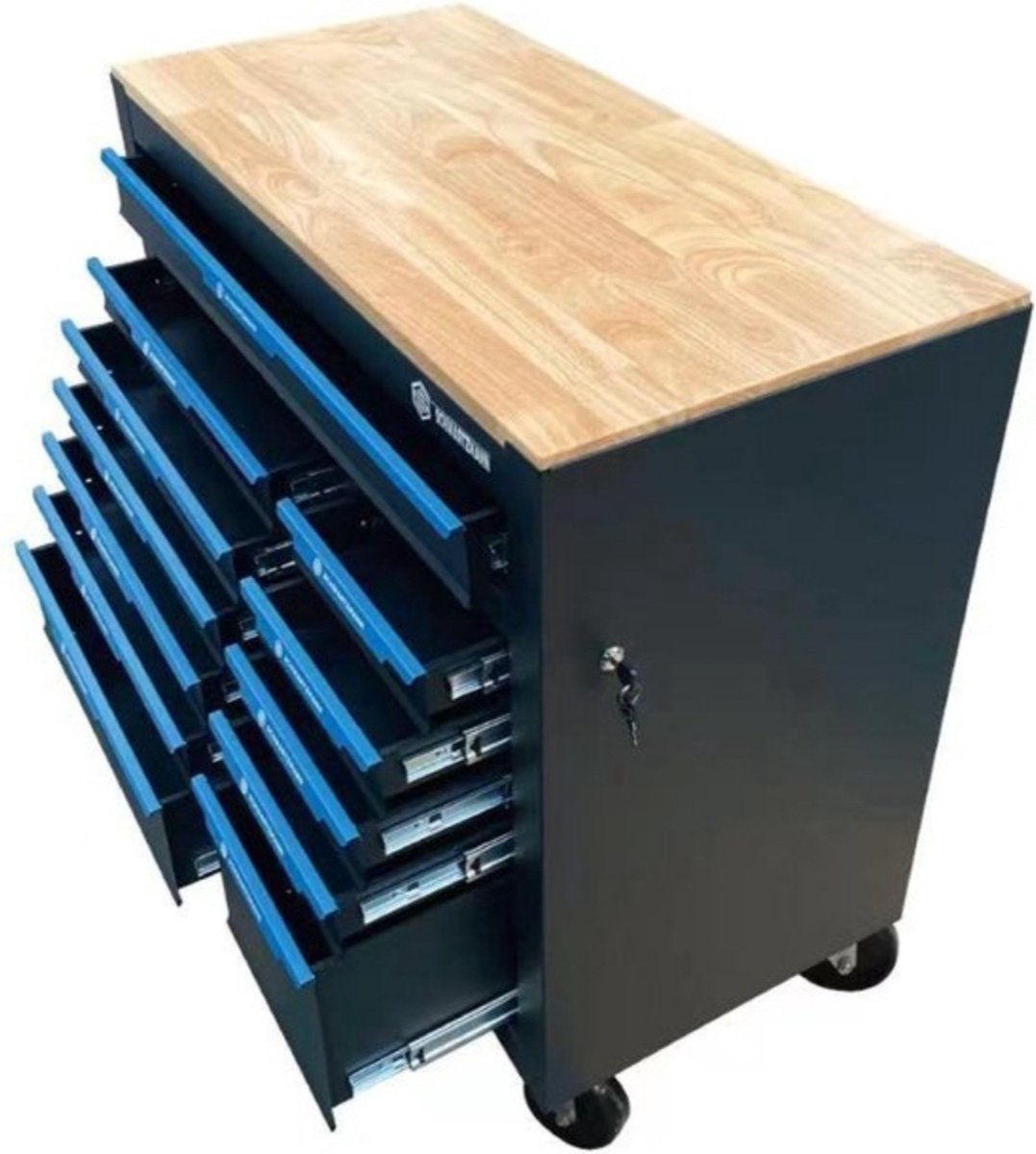 De gereedschapstrolley is gemaakt van hoogwaardig staal en heeft een poedercoating afwerking om roest en slijtage te voorkomen. De zwenkwielen maken het gemakkelijk om de trolley te verplaatsen, zelfs met zware gereedschappen erin. Het stevige handvat zorgt voor extra draagcomfort en maakt het eenvoudig om de trolley te verplaatsen. Dankzij de 3 lades en het middengedeelte kun je je gereedschappen georganiseerd opbergen en gemakkelijk terugvinden wanneer je ze nodig hebt. De bovenkist en onderkast bieden extra opbergruimte voor grotere gereedschappen of accessoires. Deze gereedschapstrolley is ideaal voor zowel professioneel gebruik in de werkplaats als voor hobbyisten thuis. Met zijn duurzame constructie en handige indeling is deze verplaatsbare gereedschapskoffer een onmisbaar item voor elke klusser.