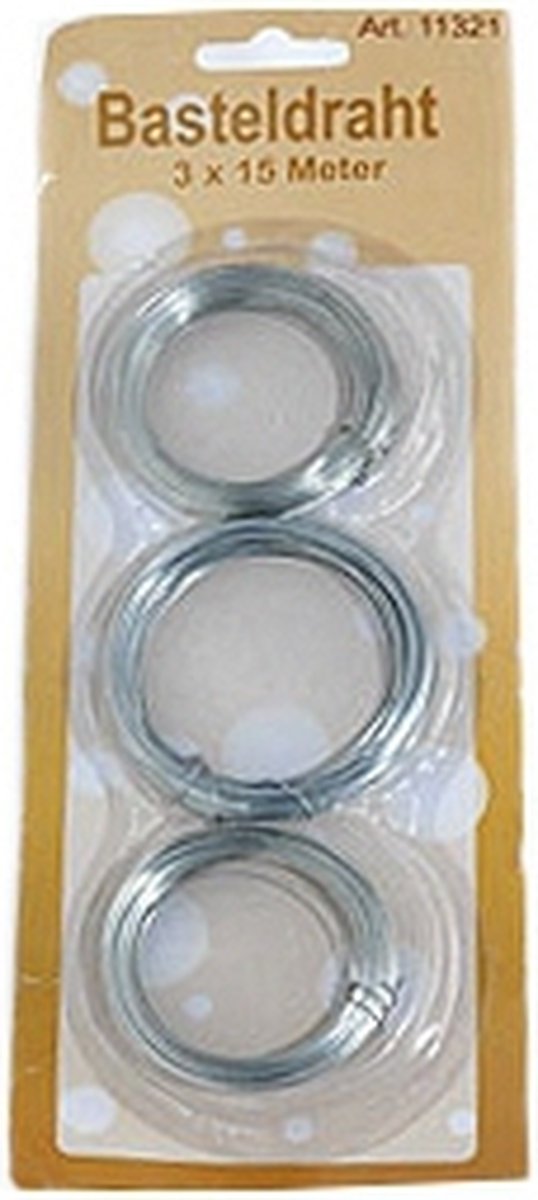 Deze handige set van 3 rollen ijzerdraad van in totaal 45 meter is perfect voor allerlei knutsel- en doe-het-zelf projecten. Met een lengte van 15 meter per rol, heb je genoeg draad om creatief aan de slag te gaan. Of je nu bezig bent met het maken van sieraden, het repareren van kapotte voorwerpen of het creëren van kunstwerken, dit ijzerdraad komt altijd van pas. Het ijzerdraad is stevig en makkelijk te buigen, waardoor het geschikt is voor verschillende toepassingen. De rollen worden geleverd op een handige blisterkaart, zodat je ze eenvoudig kunt opbergen en meenemen. Met deze set heb je altijd voldoende draad bij de hand om je creativiteit de vrije loop te laten en unieke projecten te realiseren.
