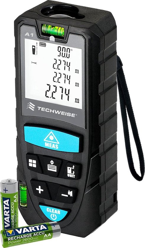 Met de Techweise laser afstandsmeter hoef je nooit meer te gokken op afstanden of maten. Of je nu een doe-het-zelver bent die precisie nodig heeft bij het klussen of een professional die snel en accuraat metingen moet verrichten, deze laser meter is geschikt voor allerlei toepassingen. Daarnaast is het apparaat voorzien van een helder LCD-scherm en ergonomisch design, waardoor het comfortabel in de hand ligt en eenvoudig te bedienen is. Naast het meten van afstanden en oppervlaktes, kun je met de Techweise laser afstandsmeter ook volumes berekenen en gebruik maken van de Pythagoras-functie voor indirecte metingen. Zo heb je alle benodigde meetopties binnen handbereik. Dankzij de hoge kwaliteit materialen en robuuste constructie is deze laser afstandsmeter duurzaam en betrouwbaar in gebruik. Kortom, met de Techweise laser afstandsmeter haal je een veelzijdig en praktisch meetinstrument in huis dat je helpt bij al je meetklussen.
