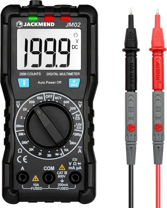 De JACKMEND digitale multimeter is een must-have tool voor elke doe-het-zelver of professional die met elektriciteit werkt. Met zijn slanke ontwerp en handige LED zaklamp is deze multimeter niet alleen functioneel, maar ook gemakkelijk mee te nemen. Met de mogelijkheid om zowel wisselstroom (AC) als gelijkstroom (DC) spanning te meten, biedt deze spanningsmeter veelzijdigheid en nauwkeurigheid voor al je elektrische projecten. Naast zijn indrukwekkende meetbereik en veiligheidsniveau, is de JACKMEND multimeter ook voorzien van een handige hold-functie en een automatische uitschakelfunctie om energie te besparen. Of je nu een professional bent die dagelijks met elektriciteit werkt of een amateur die af en toe klusjes in huis doet, deze multimeter is de perfecte metgezel om ervoor te zorgen dat al je elektrische taken veilig en efficiënt worden uitgevoerd. Bestel vandaag nog en ervaar zelf het gemak en de precisie van de JACKMEND digitale multimeter!