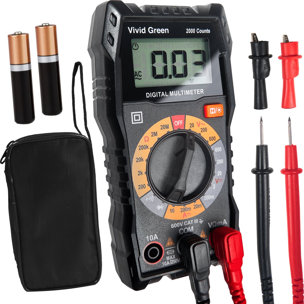 De Vivid Green digitale multimeter is niet alleen handig voor professionals, maar ook voor hobbyisten die graag zelf klussen in en rondom het huis. Dankzij de slimme spanningsmeter functie kan je eenvoudig wisselstroom (AC) en gelijkstroom (DC) meten, waardoor je snel en nauwkeurig de elektrische spanning in verschillende circuits kan controleren. Daarnaast is deze multimeter voorzien van een automatische uitschakelfunctie om batterijvermogen te besparen en een hold-functie om meetwaarden vast te houden. Met de Vivid Green digitale multimeter heb je alle benodigde meetinstrumenten binnen handbereik om elektrische problemen op te lossen en elektrische installaties te controleren. De compacte en slanke vorm zorgt ervoor dat deze multimeter gemakkelijk mee te nemen is in je gereedschapskoffer. Daarnaast wordt deze multimeter geleverd met een handige draagtas en meetkabels, zodat je direct aan de slag kan gaan. Kortom, de Vivid Green digitale multimeter is een onmisbaar gereedschap voor iedereen die regelmatig met elektriciteit werkt!