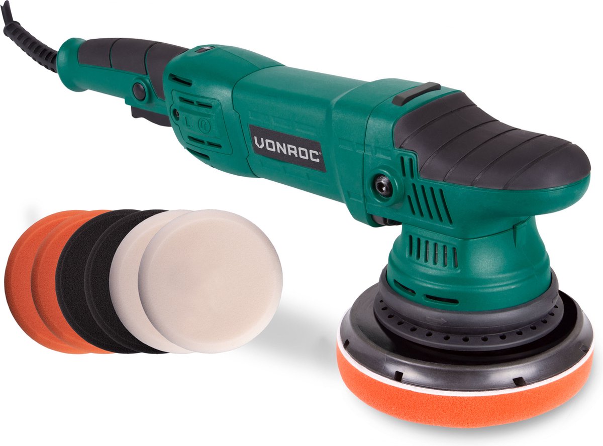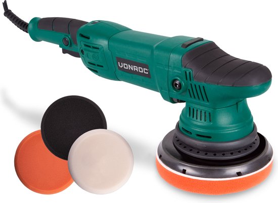 De VONROC Excentrische polijstmachine met Soft start en vast vermogen is een krachtig gereedschap dat perfect is voor het polijsten van verschillende oppervlakken. Met een uitslag van 9mm en een steunschijf van Ø125mm kun je zelfs de kleinste hoekjes en randen gemakkelijk bereiken. De zachte startfunctie zorgt ervoor dat je de machine soepel kunt opstarten, zonder schokken of trillingen. Dankzij de 7 meegeleverde polijstschijven kun je direct aan de slag met het verwijderen van krassen, oxidaties en het laten stralen van je lak. Of je nu een beginner bent of een professionele detailer, deze polijstmachine is geschikt voor iedereen. Met deze complete set haal je een kwalitatief hoogwaardig en veelzijdig gereedschap in huis waarmee je jouw voertuigen en andere oppervlakken weer als nieuw kunt laten uitzien.