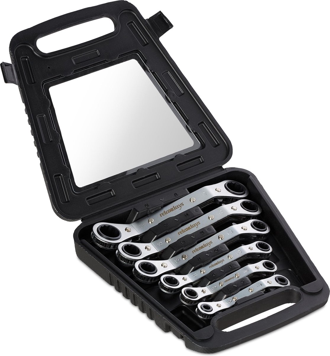Met deze handige ringratelsleutelset hoef je nooit meer te zoeken naar de juiste maat ringsleutel. De set bevat 6 verschillende maten, variërend van 6 tot 15 mm, 17 mm en 19 mm. Dankzij de verstelbare ratel kun je eenvoudig schakelen tussen rechts- en linksom draaien, waardoor klussen een fluitje van een cent wordt. De knik aan de kant van de ratel zorgt voor extra gebruiksgemak en comfort tijdens het werken. De ringratelsleutelset wordt geleverd in een handige opbergdoos, waarin de sleutels overzichtelijk en makkelijk toegankelijk zijn opgeborgen. Zo raak je nooit meer een sleutel kwijt en heb je altijd alles bij de hand voor al je klusjes. Of je nu een ervaren klusser bent of net begint, met deze set ben je altijd goed uitgerust voor elke klus. Maak het jezelf gemakkelijk en bestel vandaag nog deze handige ringratelsleutelset!
