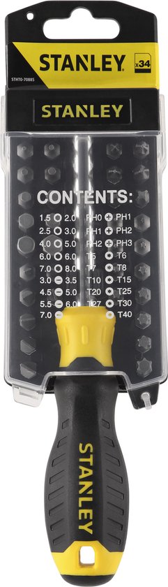 De STANLEY STHT0-62141 Schroevendraaierset is niet alleen handig voor doe-het-zelvers, maar ook voor professionals die op zoek zijn naar betrouwbaar gereedschap. De set bevat maar liefst 34 verschillende schroevendraaiers, waardoor je voor elke klus het juiste gereedschap bij de hand hebt. Of je nu bezig bent met een kleine reparatie in huis of een groter project buitenshuis, met deze set ben je altijd goed voorbereid. De schroevendraaiers zijn gemaakt van duurzaam materiaal en zijn ontworpen voor langdurig gebruik. Daarnaast zorgen de ergonomische handgrepen ervoor dat je comfortabel kunt werken zonder last te krijgen van je handen. Met de magnetische tip van de schroevendraaiers blijven schroeven gemakkelijk op hun plek zitten, wat het klussen nog eenvoudiger maakt. Kortom, de STANLEY STHT0-62141 Schroevendraaierset is een onmisbare toevoeging aan jouw gereedschapscollectie.