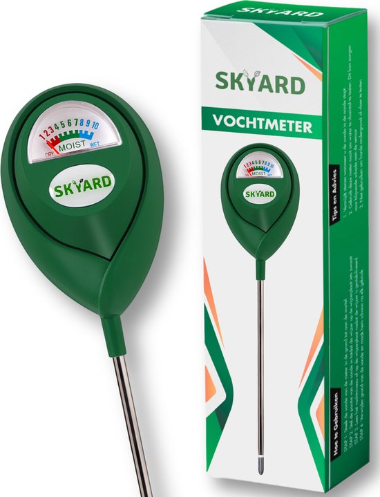 Met de SKYARD® vochtmeter voor planten hoef je nooit meer te raden wanneer het tijd is om je planten water te geven. Deze handige hygrometer kan zowel binnen als buiten worden gebruikt en geeft nauwkeurig de vochtigheidsgraad van de grond weer. Zo kun je er zeker van zijn dat je planten altijd de juiste hoeveelheid water krijgen en optimaal kunnen groeien. De vochtmeter is eenvoudig te gebruiken en heeft een handige watermeter waarmee je precies kunt zien of de grond te droog of te nat is. Met zijn compacte formaat is deze vochtmeter ideaal voor zowel kleine potplanten als grote tuinplanten. Voorkom uitdroging of overbewatering en geef je planten de zorg die ze verdienen met de SKYARD® vochtmeter voor planten. Bestel hem vandaag nog en geniet van gezonde en bloeiende planten in huis en tuin!