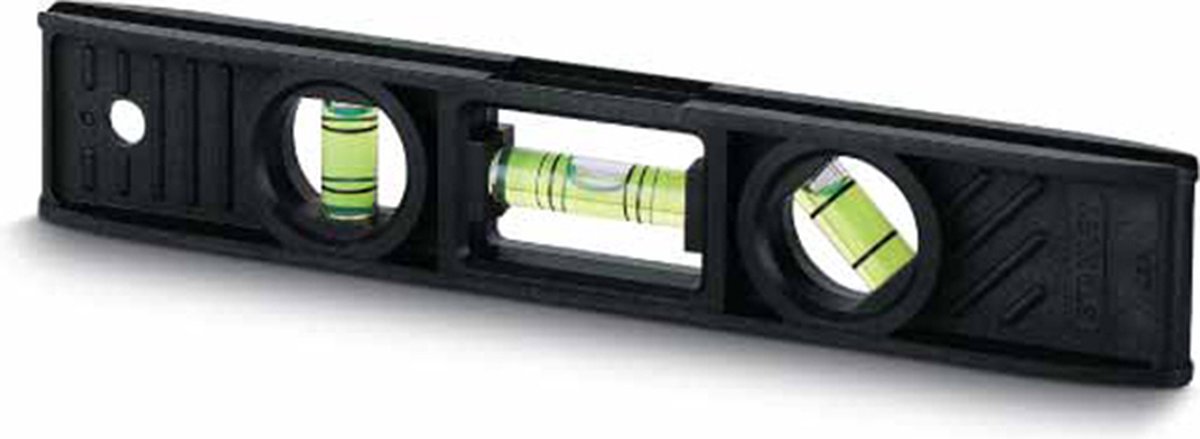 De STANLEY Torpedo Waterpas is een onmisbaar gereedschap voor elke klusser. Met zijn compacte formaat van 20 cm en lichtgewicht kunststof constructie is deze waterpas gemakkelijk mee te nemen en te gebruiken op verschillende werkplekken. De 3 libellen zorgen ervoor dat je altijd nauwkeurig kunt meten, zowel horizontaal, verticaal als op een hoek van 45 graden. Naast zijn handige formaat en veelzijdige gebruiksmogelijkheden, is deze waterpas ook nog eens erg praktisch in gebruik. Het ophanggat maakt het eenvoudig om de waterpas op te bergen en de groef zorgt ervoor dat je hem ook kunt gebruiken op ronde oppervlakken. Met de STANLEY Torpedo Waterpas ben je verzekerd van precisie en gemak bij al je meet- en maatwerk. Maak je gereedschapskist compleet met deze handige tool!