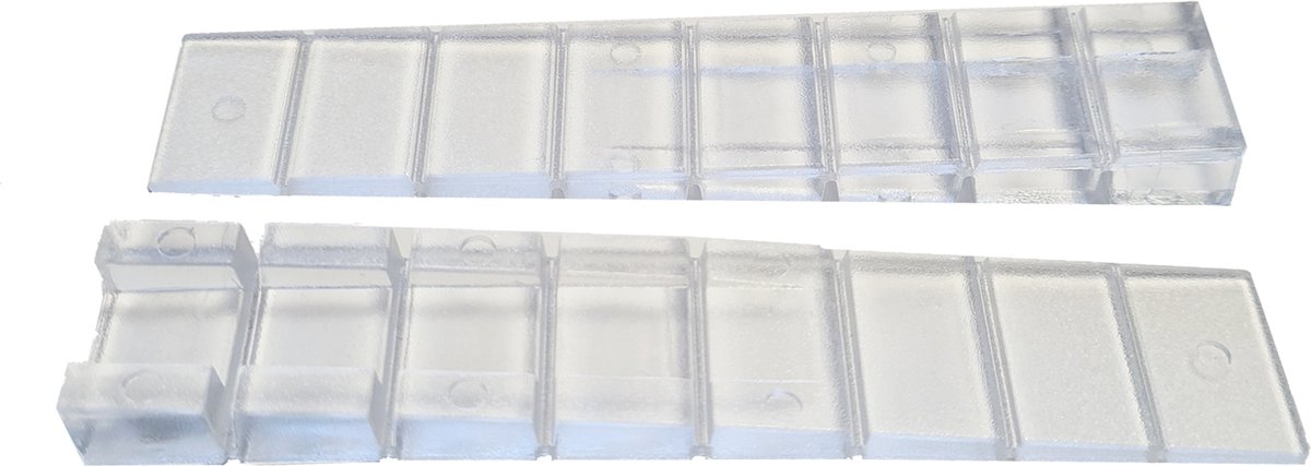 Onze verstelbare meubelwiggen zijn gemaakt van transparant kunststof, waardoor ze niet alleen stevig zijn, maar ook een moderne uitstraling hebben. De set bestaat uit 1 totVerstelbaar stelwig, waarmee je eenvoudig verschillende meubelstukken kunt afstellen. Dankzij het gemakkelijk afbreekbare ontwerp kun je de wiggen na gebruik eenvoudig opbergen zonder dat ze veel ruimte in beslag nemen. Met deze stelwiggen hoef je niet langer te worstelen met wiebelende kasten of scheve meubels. Door hun duurzame en praktische ontwerp zijn ze een must-have voor elke klusser of interieurontwerper. Voeg deze handige meubelwiggen toe aan je gereedschapskist en geniet van perfect gestelde meubels in huis.