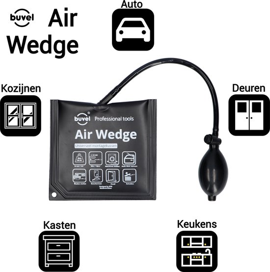 De Buvel Air Wedge opblaasbare wig is een veelzijdig hulpmiddel dat perfect is voor het nauwkeurig afstellen en positioneren van deuren, ramen, meubels en nog veel meer. Dankzij het unieke ontwerp en de mogelijkheid om het kussen op te blazen tot de gewenste dikte, kun je met gemak zelfs de lastigste klussen aan. Daarnaast is de Buvel Air Wedge voorzien van een handige ventiel waarmee je de luchtdruk eenvoudig kunt regelen. Dit luchtkussen is niet alleen handig voor professionele klussers, maar ook voor doe-het-zelvers en handige harry's. Of je nu bezig bent met een grote renovatie of gewoon een klemmende deur wilt verhelpen, de Buvel Air Wedge is het ideale gereedschap. Voeg dit handige hulpmiddel toe aan je collectie en maak elke klus een stuk makkelijker en efficiënter!